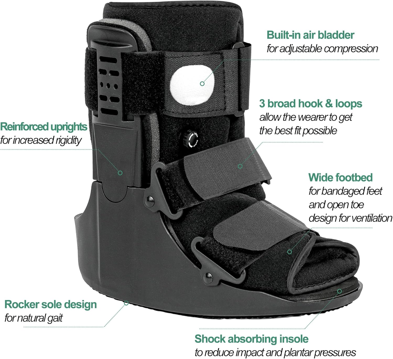 Air Walking Boot, Fracture Boot Short Walker Protection Fits Left or Right Foot Ankle Support for Injuries Fractures Sprains Black M